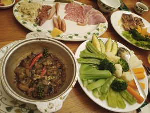 ハム、ソーセージ系の肉料理中心で野菜は温野菜この料理がビールにとても合い増々ビールの消費量が・・・