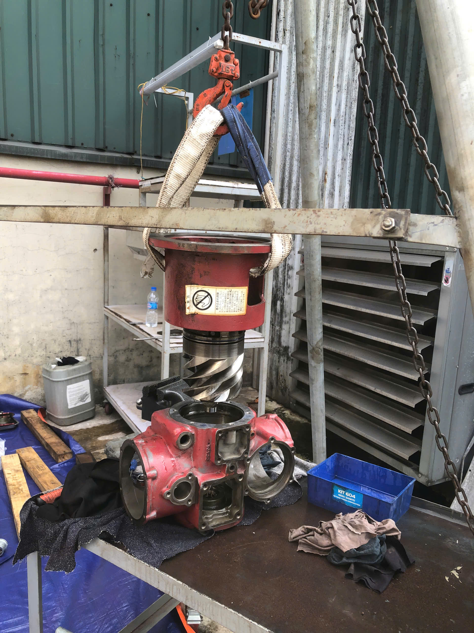 Máy nén khí trục vít MITSUISEIKI có 1 trục vít lớn cấu tạo 12 rãnh nén kết hợp với 2 cánh gió nhỏ,dễ dàng tháo lắp thay thế so với nhiều hãng khác.